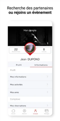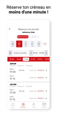 - Consulte les différents cours et réserve ta place - La boutique du club - Les dernières informations - Tes abonnements - Les autres membres du club