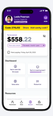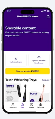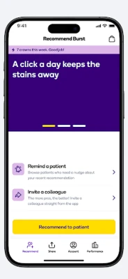 The BURST Professionals app is the tool used by our dental partners. Here, they register for an account, make recommendations to their patients and track their commissions based off these referrals.