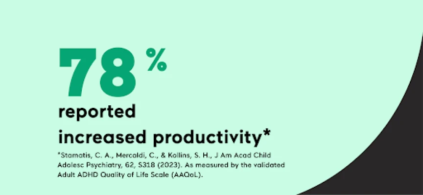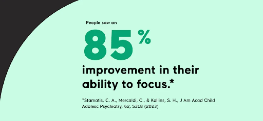 1 Stamatis, C. A., Mercaldi, C., & Kollins, S. H., J Am Acad Child Adolesc Psychiatry, 62, S318 (2023). As measured by average percent change in the Test of Variables of Attention-Attention Comparison Score (TOVA-ACS).