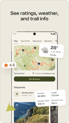 Download your planned outdoor adventures and save topographic maps with one tap. Navigate the outdoors even when the internet is down or unreliable. Differentiate hiking trails, singletrack, paved roads, MTB trails, terrain, and land cover with one glance.