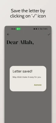 - Write Intimate Letters: "Letter to Allah" provides a serene and uncluttered interface where you can pen down your innermost thoughts. Express your joys, sorrows, desires, and confessions with complete honesty and sincerity.