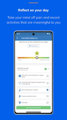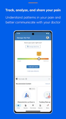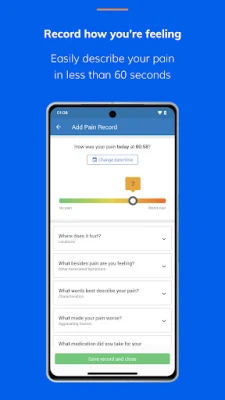 • Track your pain & activity: Reflect on your day in less than 60 seconds to see patterns and trends