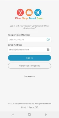 Note: The Passport Mobile app requires that you sign in using a current Passport membership. You must have a card displaying the Passport Dining, Passport Corporate or Passport Lifestyle program logo (or be a registered Mobile card member) in order redeem the offers listed in this app.