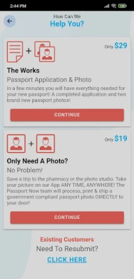 • Just a Photo $19: No Problem! Save a trip to the pharmacy or the photo studio. Take your picture on our App ANY TIME, ANYWHERE! The Passport Now team will process, print & ship two government-compliant passport photos DIRECTLY to your door!