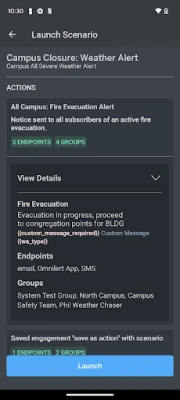 Omnilert's user-friendly admin portal enables users to launch scenarios on the go. Verify your account through multi-factor authentication and easily view and launch from a list of your scenarios.